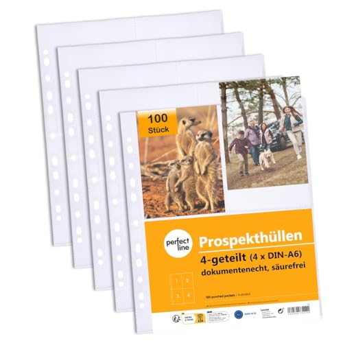 Pochettes transparentes DIN A4 4 compartiments perforées pou...