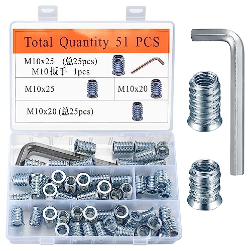50 Pièces Manchons à Visser, M10 Écrous à Visser, Insert à V...