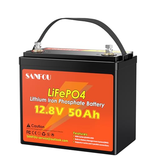 SanoFou Batterie LiFePO4 12V50Ah, Lithium 640Wh BMS 50A 5000...