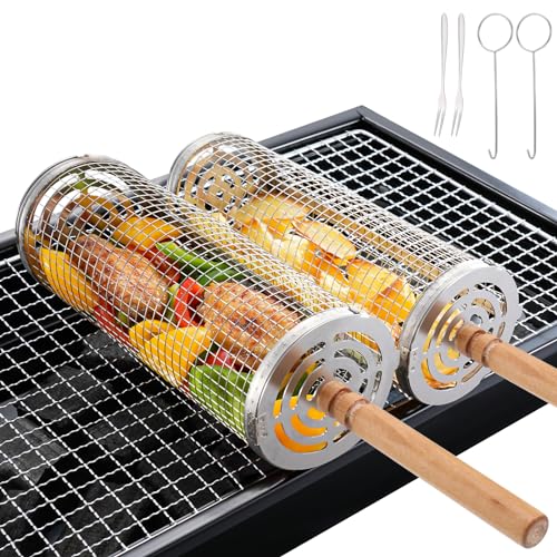 [Rolling Grilling Basket] : Le panier de gril roulant est co...