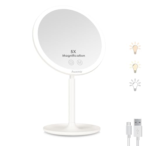 Auxmir Miroir Grossissant Lumineux 5X, Miroir Cosmétique à B...