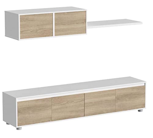 Esidra Meuble TV bas suspendu à 2 portes 200 x 43 x 41, uniq...