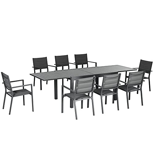 Salon de Jardin Extensible Aluminium et Textilène 135-270 cm...