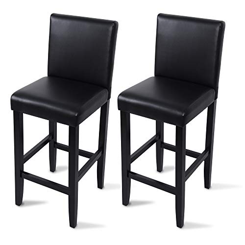 Woltu 2 Tabourets Bar Pieds Bois Cuir Synthétique Noir BH21s...
