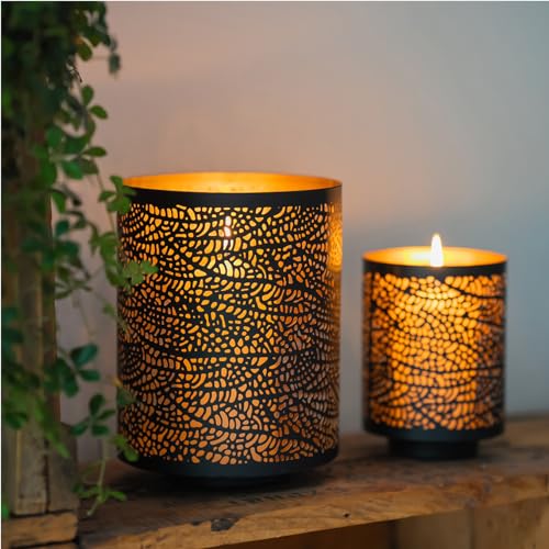 ZEYA Lot de 2 photophores orientaux en métal noir doré - 20...