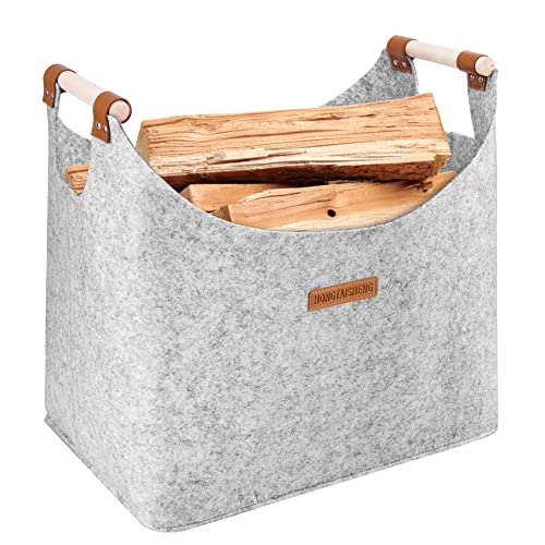 Panier à bûches XL épais feutre renforcé poignée | Sac en fe...