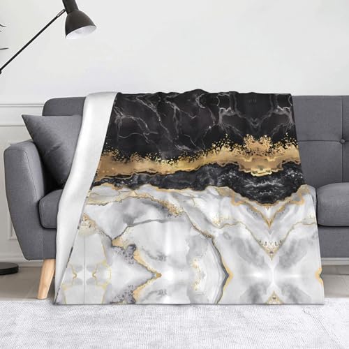 YYHHAOFA Couverture en flanelle à motif marbré noir blanc do...