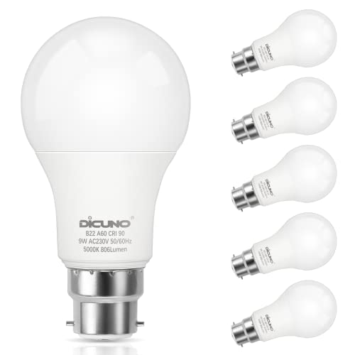 DiCN Ampoule LED B22 9W, équivalent 60W halogène, 5000K, 806...