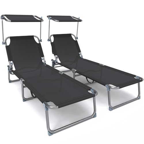 vounot Lot de 2 Chaise Longue Bain de Soleil avec Pare Solei...
