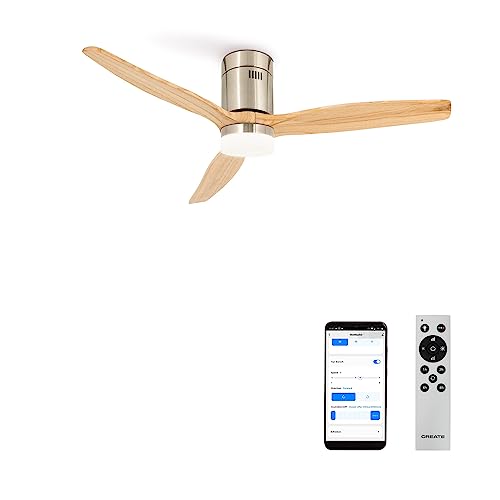 Création Ventilateur plafond niquel pales bois naturel WiFi...