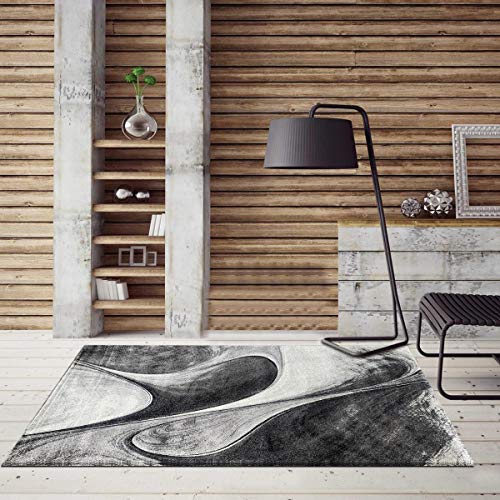 Tapis Salon Noir Motif Graphique 200x290cm Contremarque