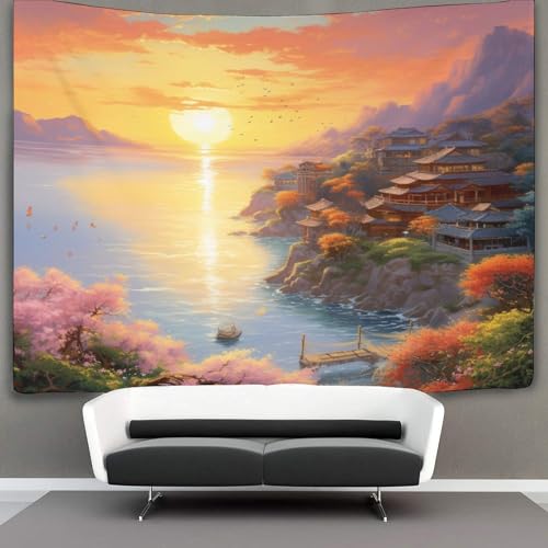 KKPBHTYVG Coucher de soleil sur le port 3D Effet Tapisserie...