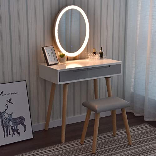 Yusing Coiffeuse LED avec Miroir et Table Maquillage Réglabl...
