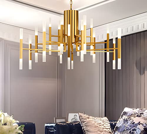 Lustre doré LED multi-niveaux, suspension métallique Spoutni...