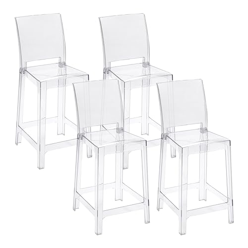 Baroni Lot de 4 tabourets en polycarbonate transparent, assi...
