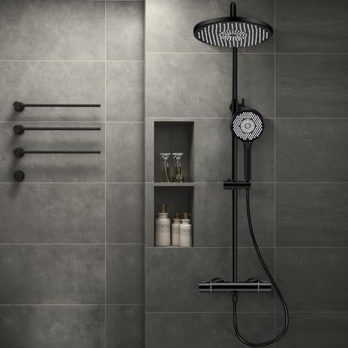 GAOZHI Douche Noir Thermostatique à 3 Jets Pommeau de 230mm