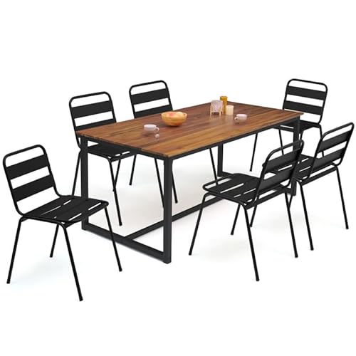 IDMarket - Soho Garden Table 150cm Acier Acacia Chaises Empi...