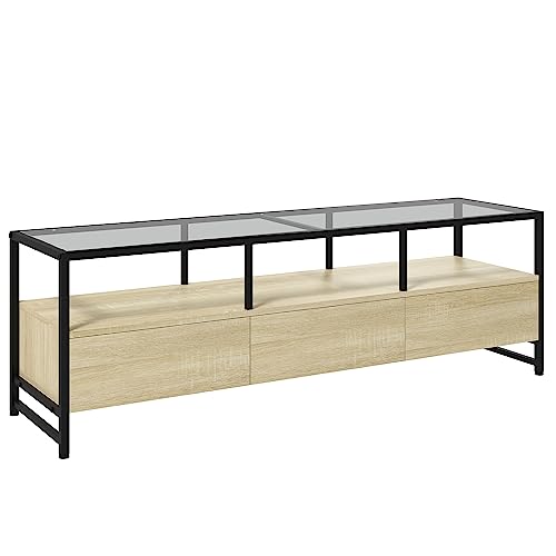 TV banc HOMCOM plateau verre tremé structure acier 3 tiroirs...