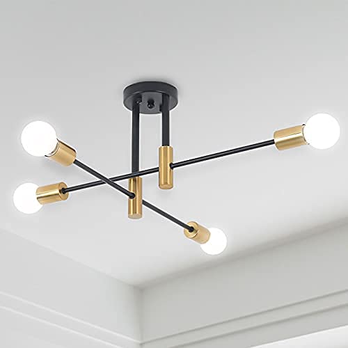Plafonnier ANDAST Vintage Or Noir Lustre Rétro 6 flammes Dou...