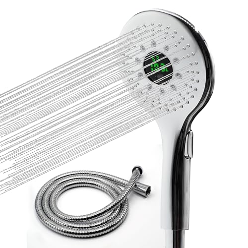 Pommeau douche 1.5m, affichage numérique, acier inoxydable,...
