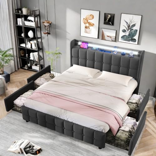 Lit Coffre 180x200 LED Rangement Double