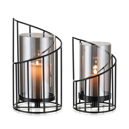 Candeldo Lot de 2 photophores décoratifs noirs modernes : lo...