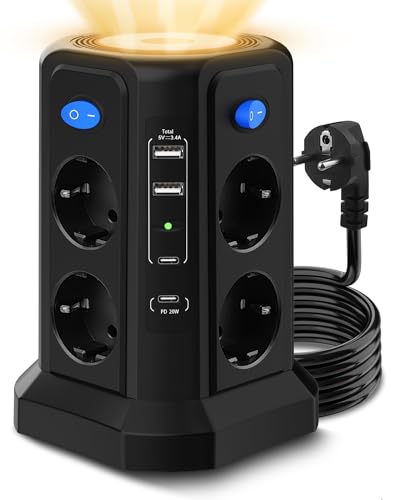 Veilleuse multiprise 4 interrupteurs, multiprise 3m tour mul...