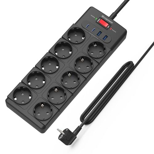 14 en 1 Multiprise avec USB : 10 prises EU et 4 ports USB (P...