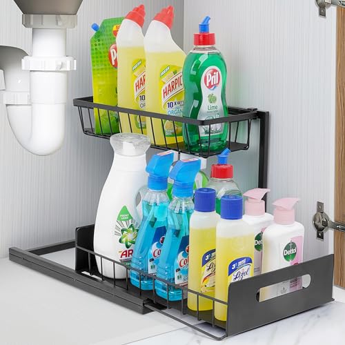Organisateur Sous Evier Noir à 2 Niveaux - Rangement Sous Ev...