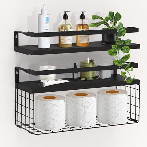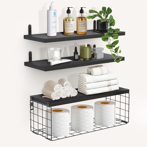 Étagères Flottantes Bois Tablette Grille Métallique Noir