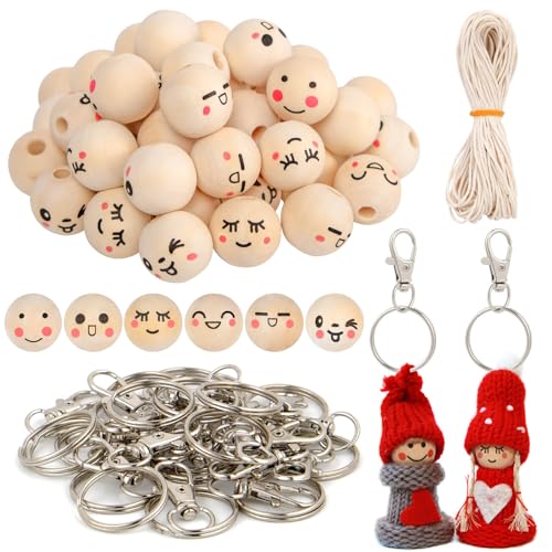 Perles en bois avec visage : les perles en bois sont imprimé...