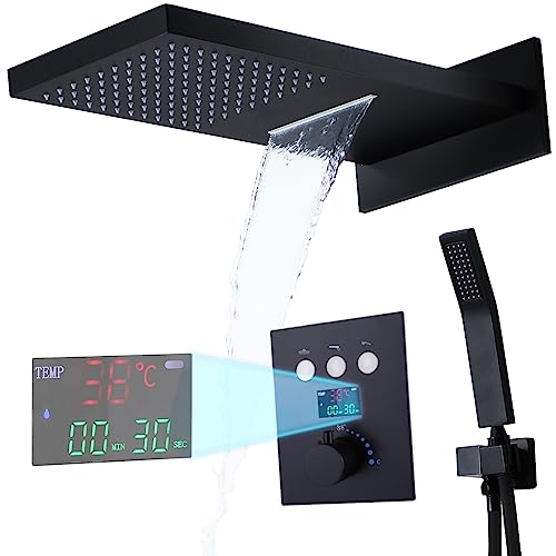 Colonne Douche Noire Thermostatique, Tête Carrée 23cm, Ensem...