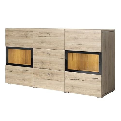 Buffet - Bahut - Enfilade Design Coloris Chêne et noir Colle...
