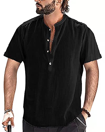 Yaoaboile Slim Fit Chemise Lin Homme Été Henley