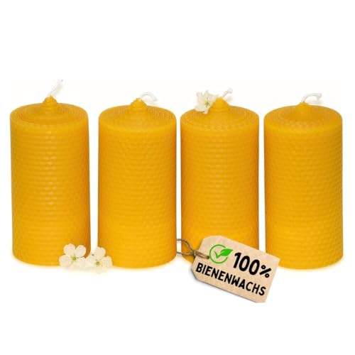 4 grandes bougies cire d'abeille, bio, 100% longue durée
