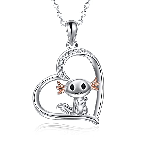 Axolotl Collier Argent Sterling 925 Cœur de Zirconium Femme