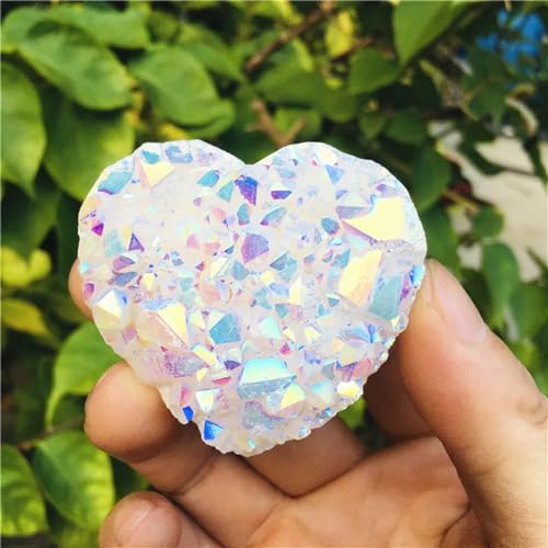 AtkitS Beau Grappe de Cristal Blanc Naturel, cœur galvanisé,...