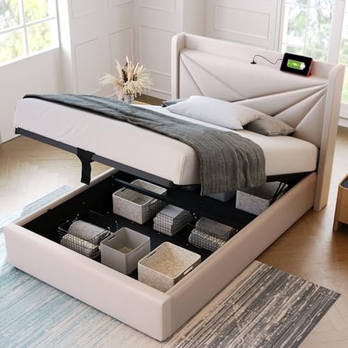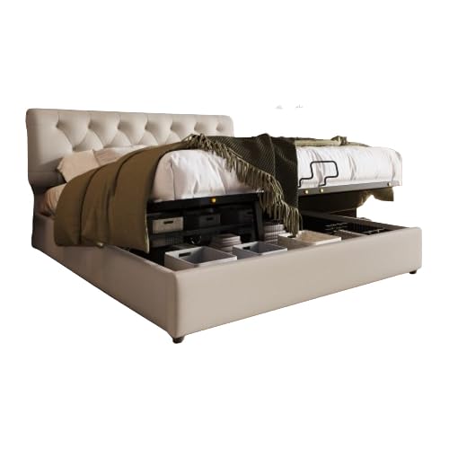KOMHTOM Lit Double Rembourré avec Rangement sous Lit, Lit Pl...