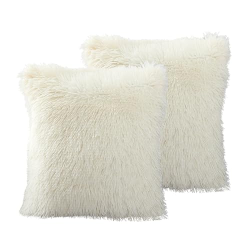 DJDEA Lot de 2 Housse Coussin de Canapé Fausse Fourrure Delu...