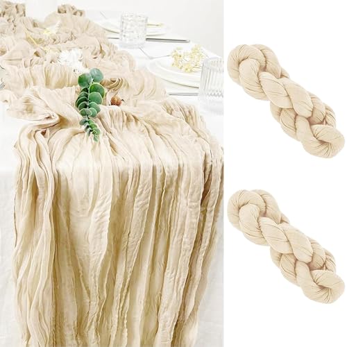 DANXIAN Lot de 2 chemins de table en étamine beige - Style b...