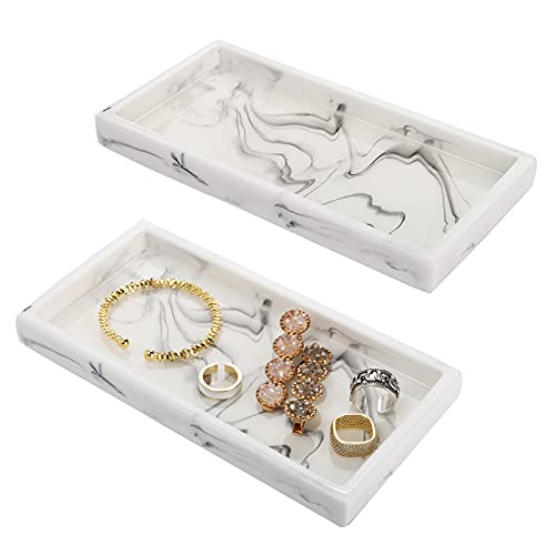 ZENFUN Lot de 2 plateaux en résine de marbre,20x10x1.8 cm,Or...