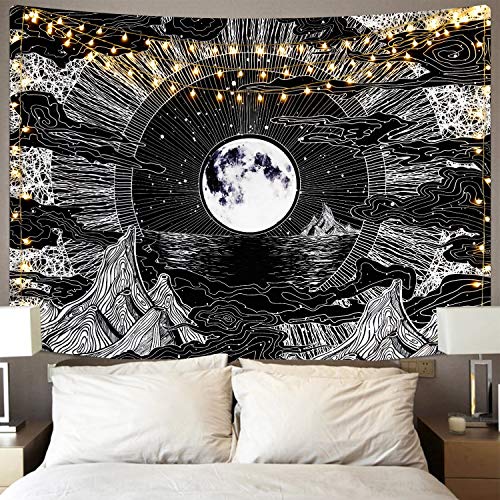 Alishomtll Tapisserie murale, psychédélique, à motif de lune...