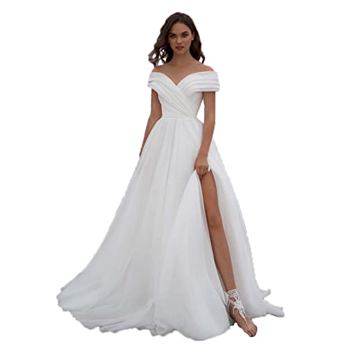 Wyslah Robe de Mariée Bohème Blanc Fourche Côté Demoiselle d...