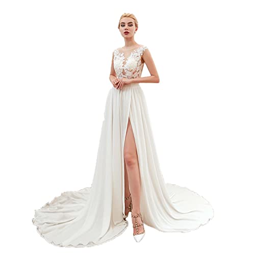 WYSLA Robe de Mariée Haute Fourche, Blanc, 18 Large Sizes