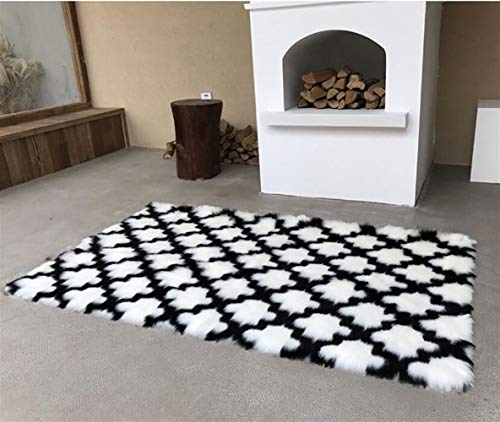 Shaggy Tapis Imitation Peau De Mouton Laine Rectangulaire Bl...