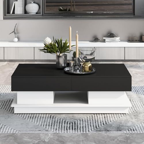 KOMHTOM Table basse extensible, noir et blanc, espace de ran...
