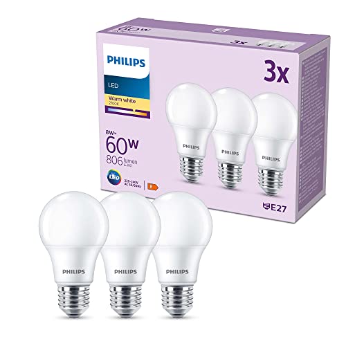 Philips pack de 3 ampoules LED E27, 60W, blanc chaud