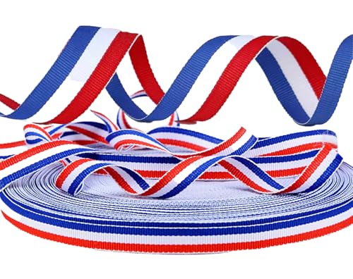 Set : 1 rouleau de ruban bleu - blanc - Rouge en polyester.
