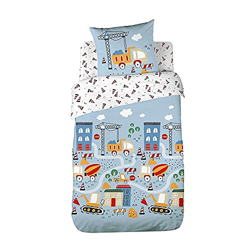 Cointe de lit enfant réversible camion et tracteur bleu hous...