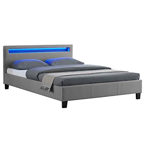 IDIMEX Lit LED Double 140x190 cm avec sommier, tête de lit C...